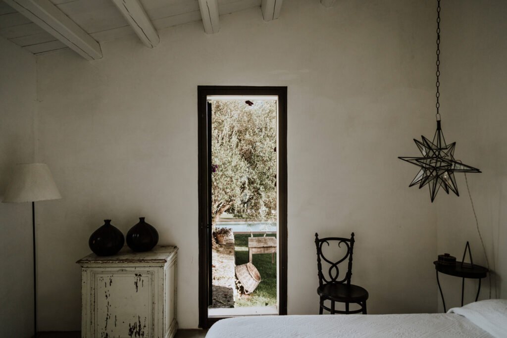 Al risveglio al mattino in questa camera  si intravede l’acqua celeste ed invitante della piscina e si possono osservare gli uccellini che volano in picchiata  per abbeverarsi.
